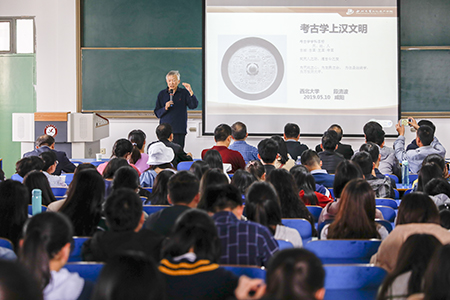 报告会上,段教授以考古学内涵及价值追求为切入点,结合文物考古,运用文献材料,旁征博引从三位一体的中国文明论纲、考古学熵的汉文明、王莽与汉文明的构建三个方面就外藏系统与中央集权体制的确立、陵墓封土形态演变与天圆地方理念的确立等陵寝文化对汉文明进行了阐释。他认为汉文明是在帝国发展过程中形成的,以汉字为书写和交流语言,以阴阳五行为宇宙观,以对立变通为思维方式,以规矩核心文化价值观为行为处事方式的文化体系。最后,段教授就师生在历史考古与汉文明研究等方面存在的疑惑进行现场答疑解惑交流。