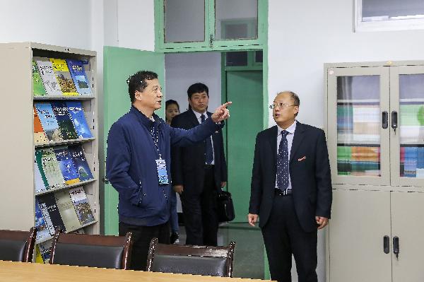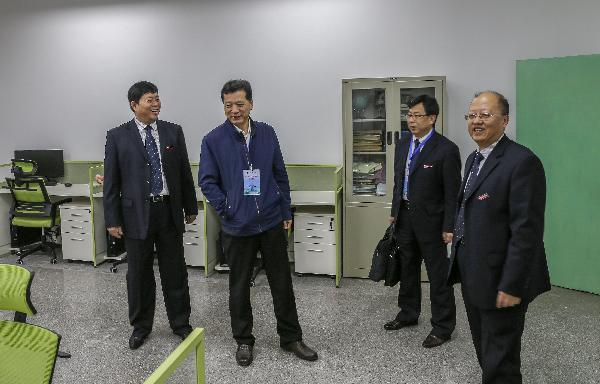 座谈会前,在公司领导的陪同下,彭教授参观了公司博士工作间、教研室、资料室的办公环境以及楼道的宣传展板。